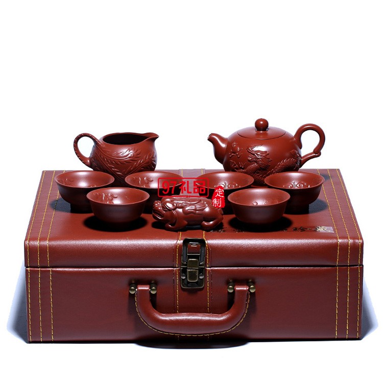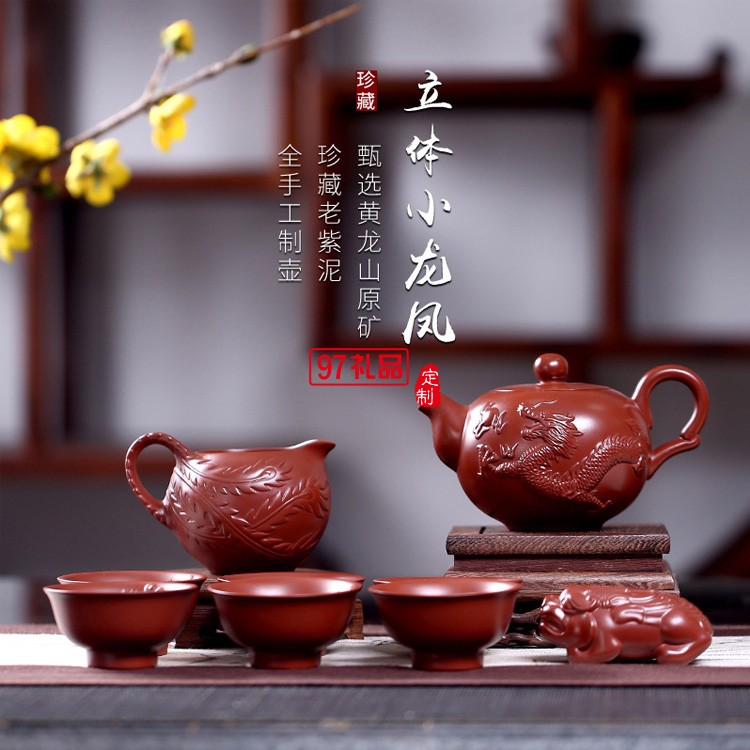 紫砂茶套壺原礦大紅袍立體小龍鳳紫砂壺高檔商務禮品定制