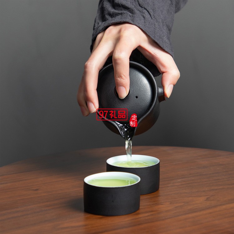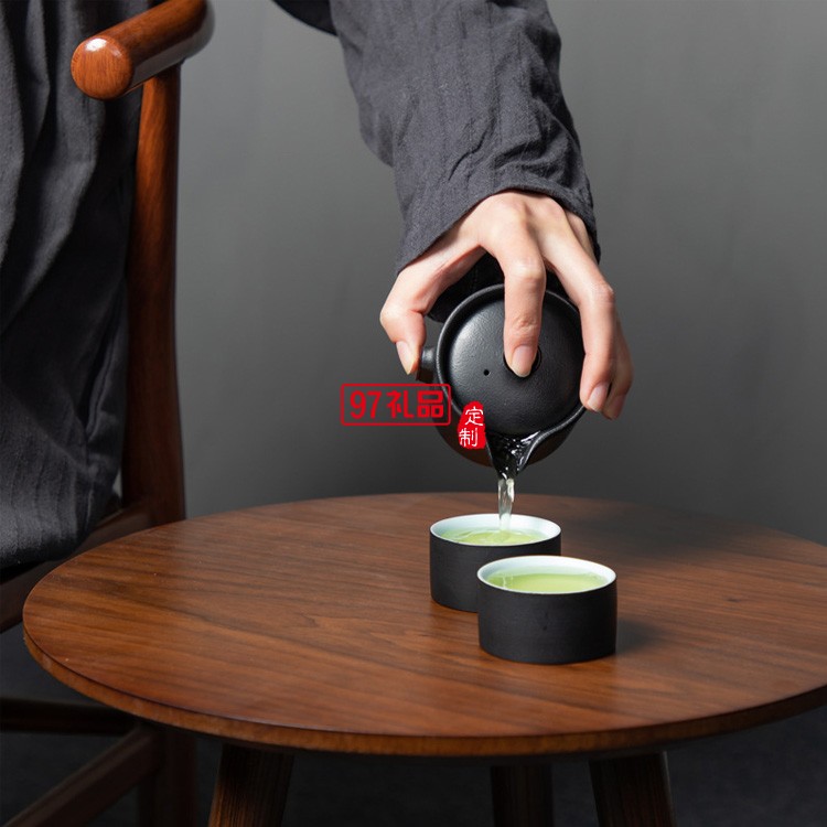 快客杯一壺二杯便攜式小包創(chuàng)意簡(jiǎn)約黑陶瓷定制隨身小旅行茶具套裝