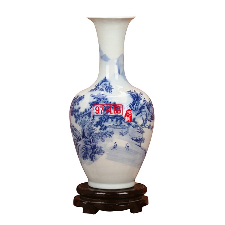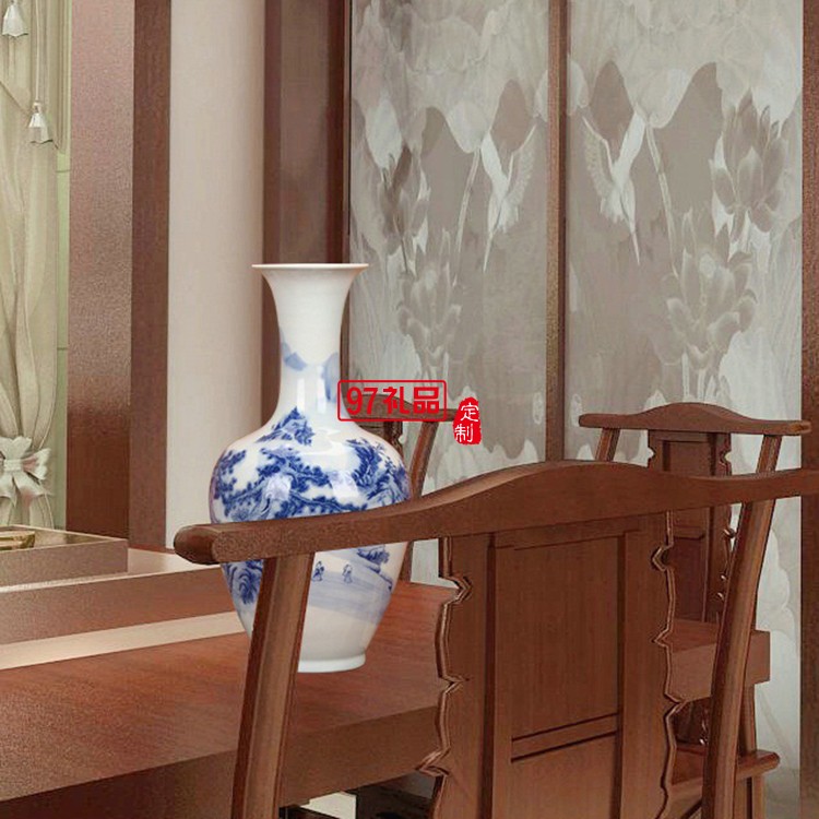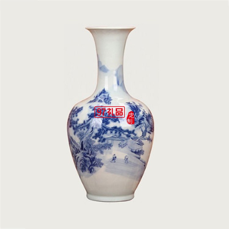 景德鎮(zhèn)陶瓷器 青花山水美人尖花瓶 家居客廳裝飾工藝品插花擺件