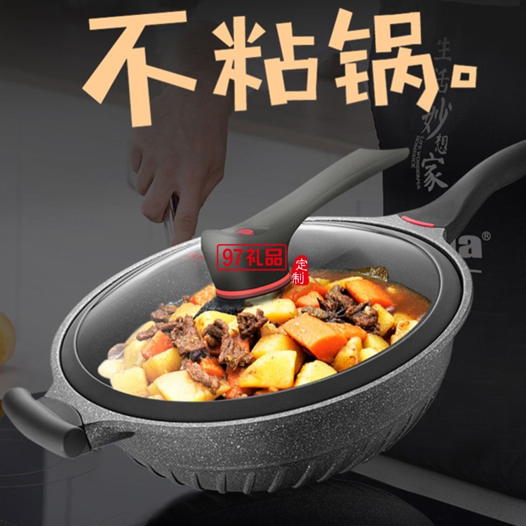 歐美達(dá)麥飯石鍋不粘鍋炒鍋炒菜鍋無油煙HZC32-B定制公司廣告禮品