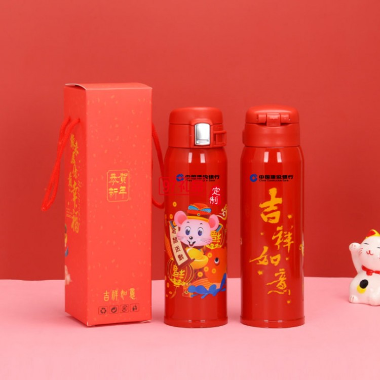2020鼠年大吉開門紅保溫杯金鼠送福溫度 可定制logo