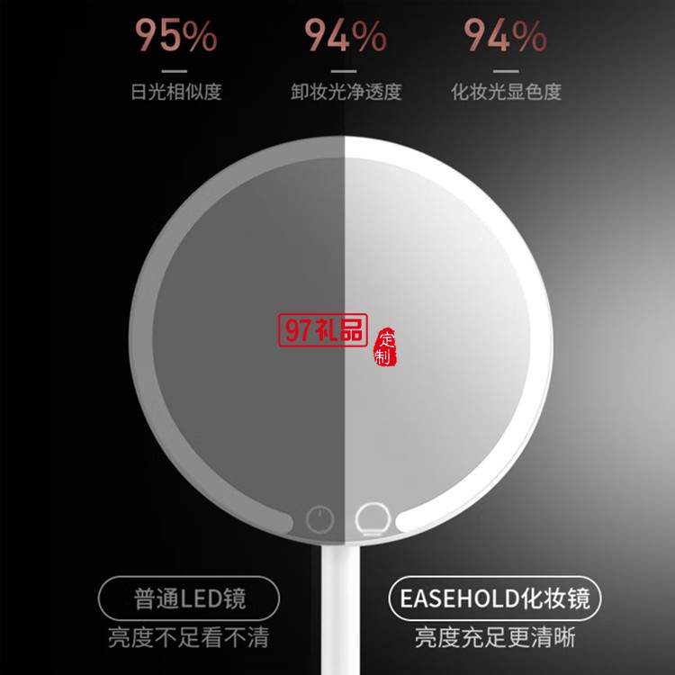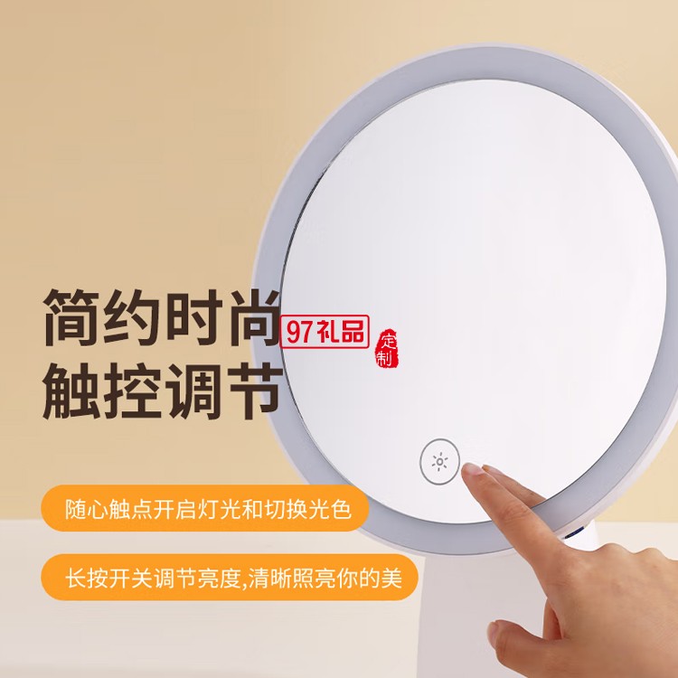 臺式化妝鏡帶燈 桌面旋轉(zhuǎn)調(diào)光智能補光梳妝鏡,定制公司廣告禮品