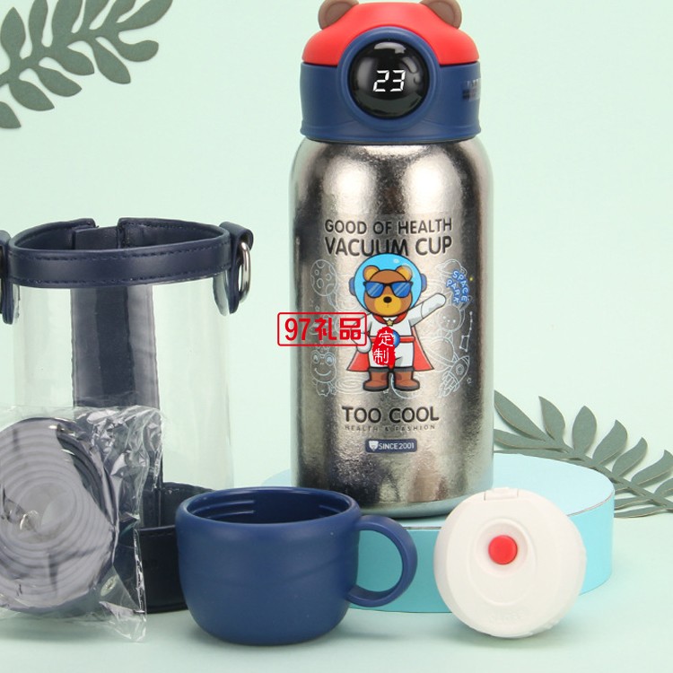 匡迪純鈦兒童吸管保溫杯5811號(hào)真空智能觸屏溫顯兒童鈦杯可定logo