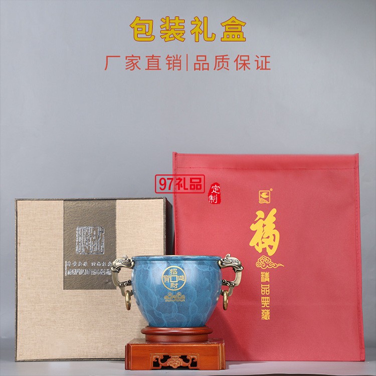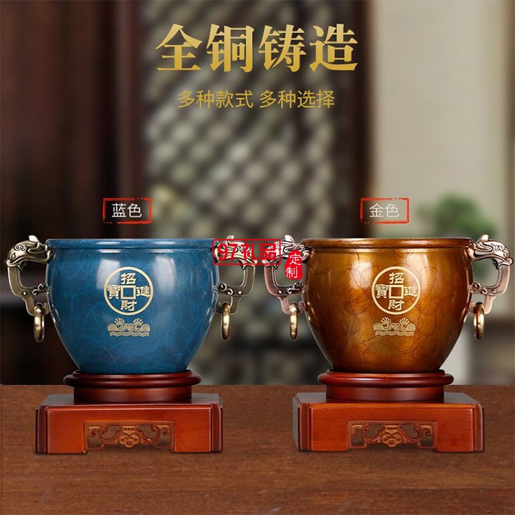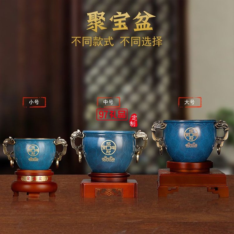聚財純銅聚寶盆招財擺件商務(wù) 辦公室創(chuàng)意禮品黃銅金屬工藝品