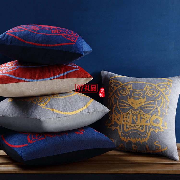 KENZO虎頭提花靠墊(藍)