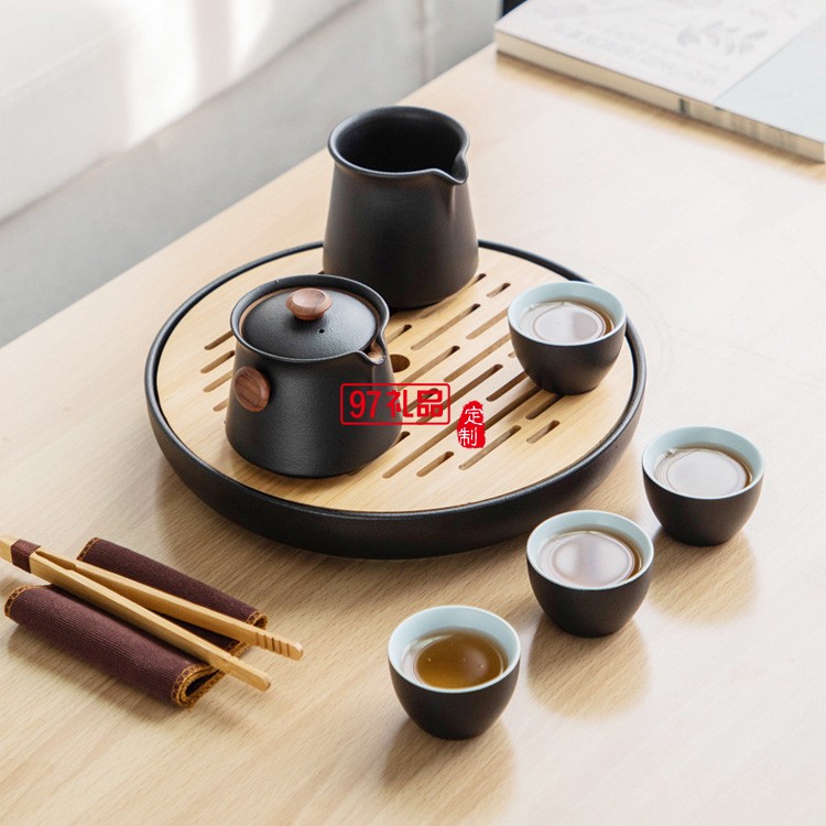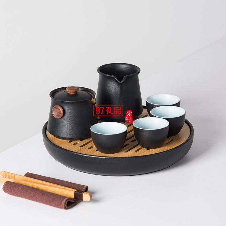 茶具套裝 實(shí)用日式簡(jiǎn)約黑陶瓷辦公室家用客廳干泡小型小套帶茶盤(pán)