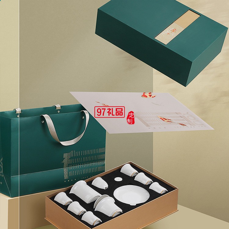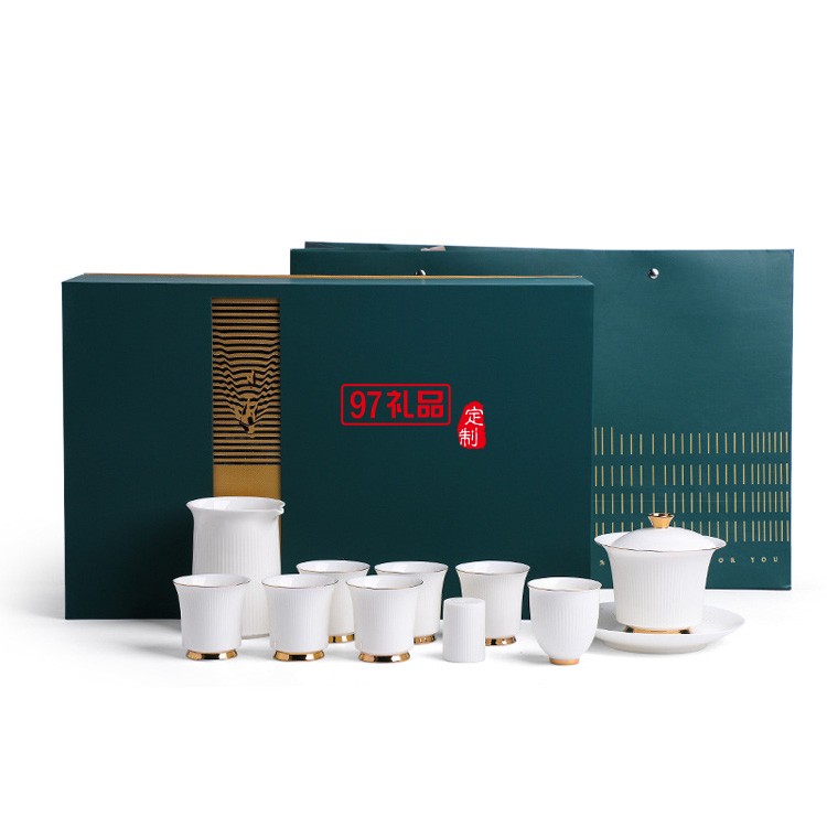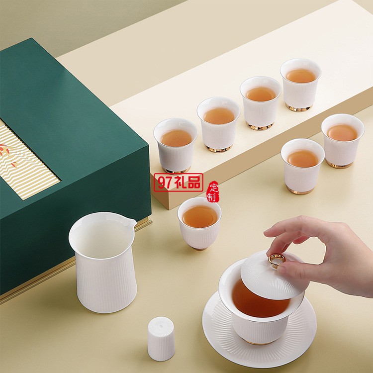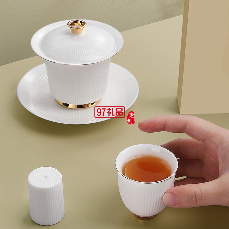 中式玉瓷茶具套裝家用簡約陶瓷白瓷蓋碗功夫茶具整套禮品禮盒