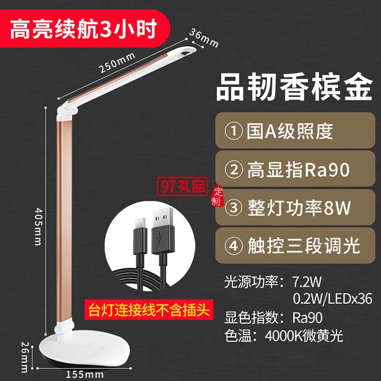 國A級臺燈LED便攜充電臺燈工作閱讀臺燈66280定制公司廣告禮品