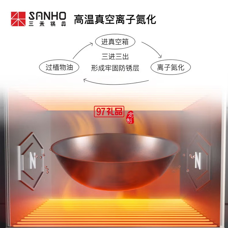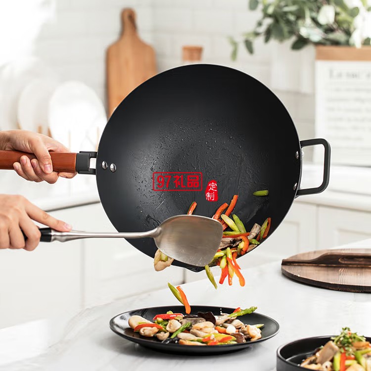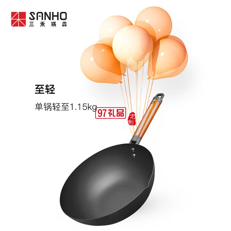 三禾鍋具新不銹極鐵鍋炒鍋炒菜鍋CTN3405定制公司廣告禮品