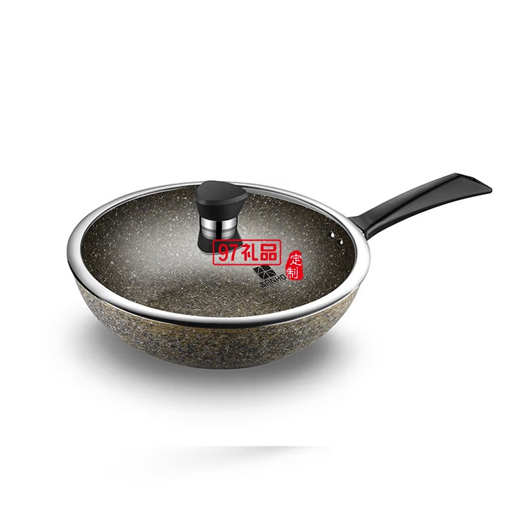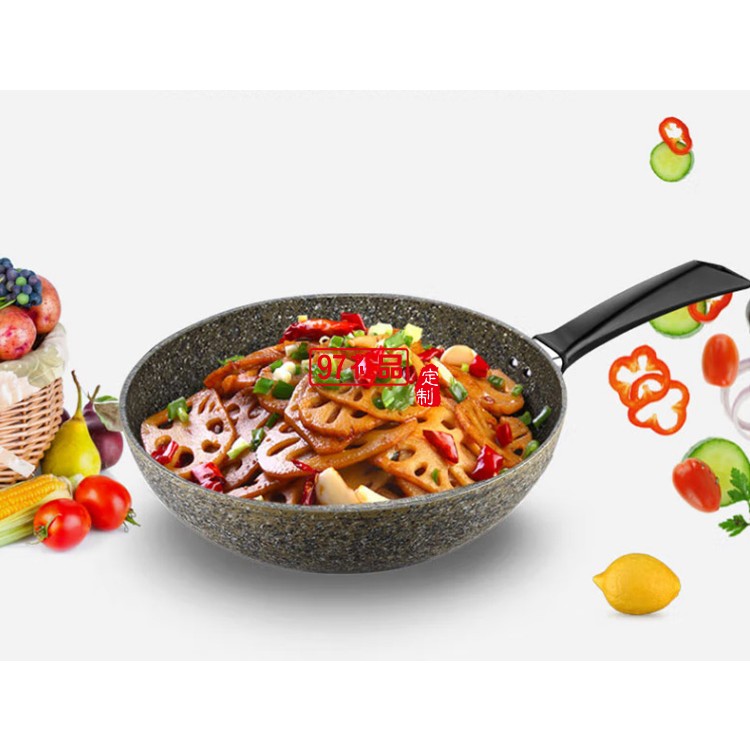 麥飯石不粘鍋多功能炒鍋30cm炒菜鍋LC30G2定制公司廣告禮品