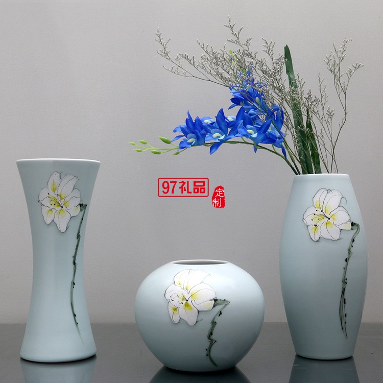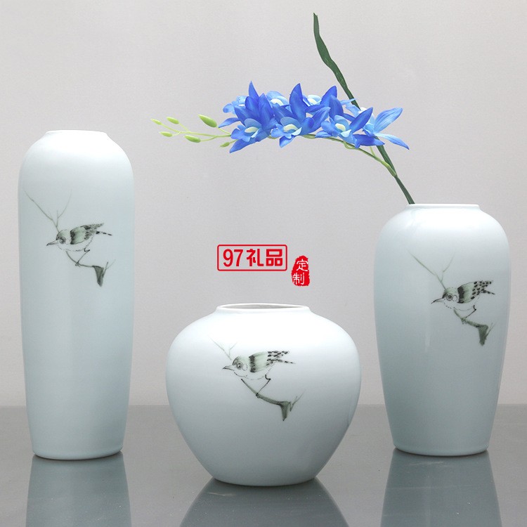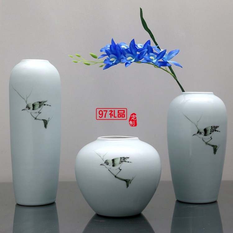 清茗居批發(fā)創(chuàng)意擺件簡(jiǎn)約現(xiàn)代家居工藝品景德鎮(zhèn)手繪陶瓷花瓶花器