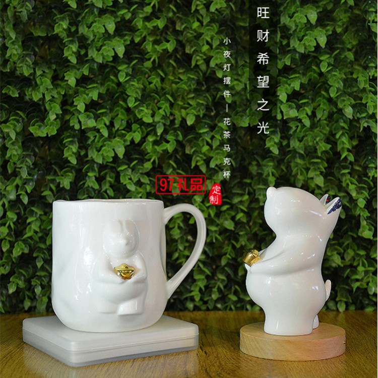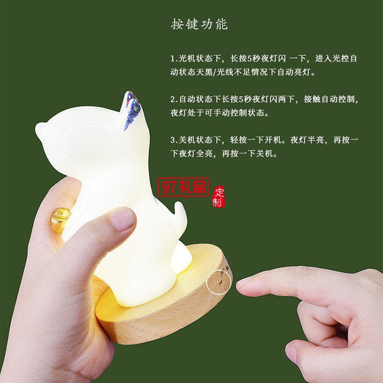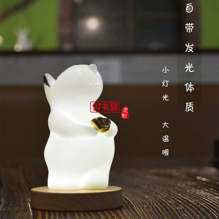 貴彬旺財(cái)陶瓷小夜燈LED光控充電擺件送客戶禮品定制