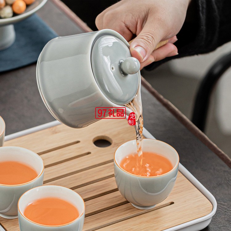 簡約冰灰釉功夫茶具套裝家用小套辦公室陶瓷提梁壺