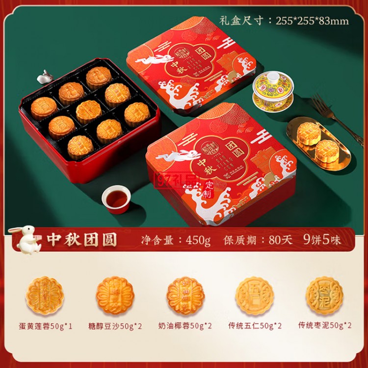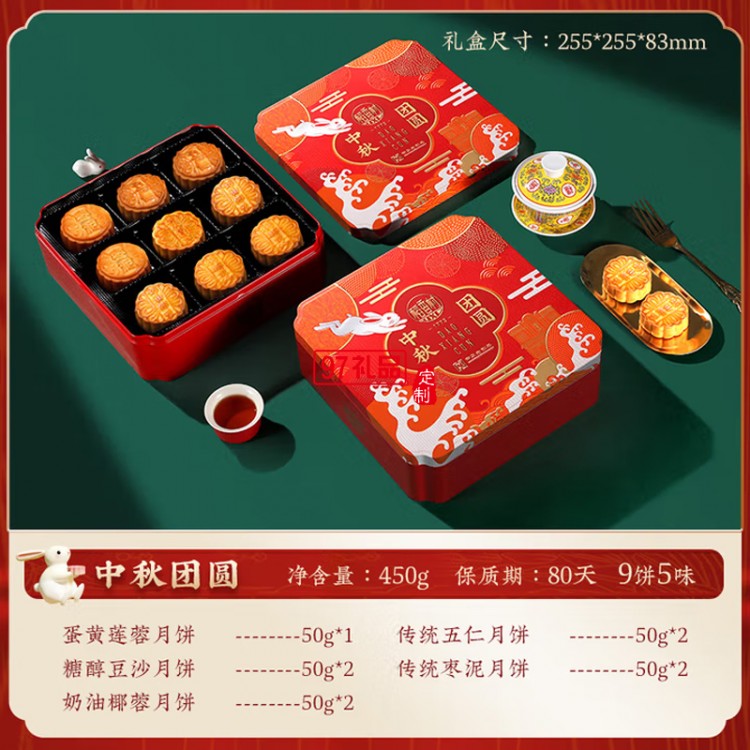 中秋節(jié)商務(wù)送禮團(tuán)購(gòu)福利 稻香村中秋團(tuán)圓450g【鐵盒9餅5味】