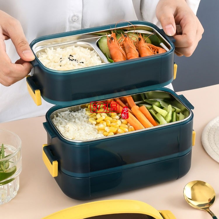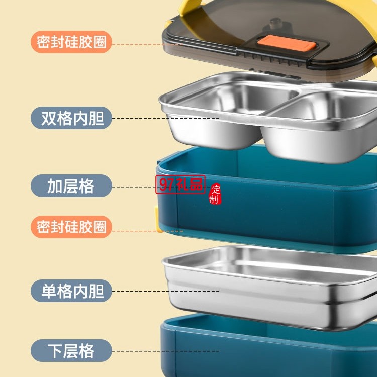 304不銹鋼飯盒食品級學(xué)生上班族分格保溫便當(dāng)盒定制公司廣告禮品