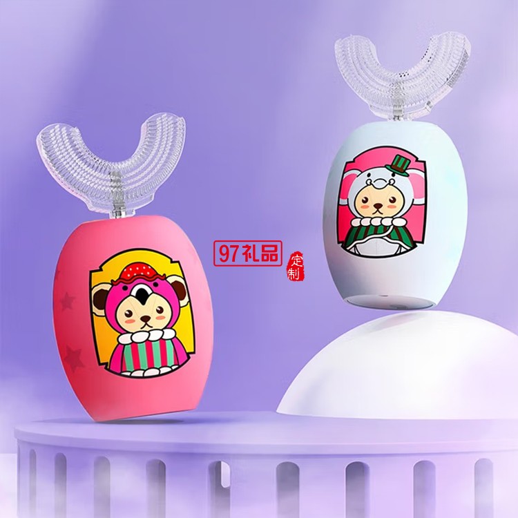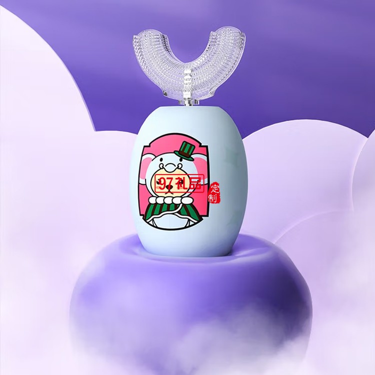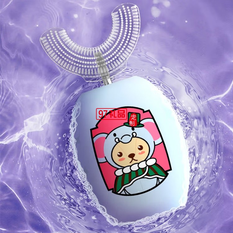 Apiyoo泰迪系列兒童聲波電動牙刷U型 淺藍色定制公司廣告禮品
