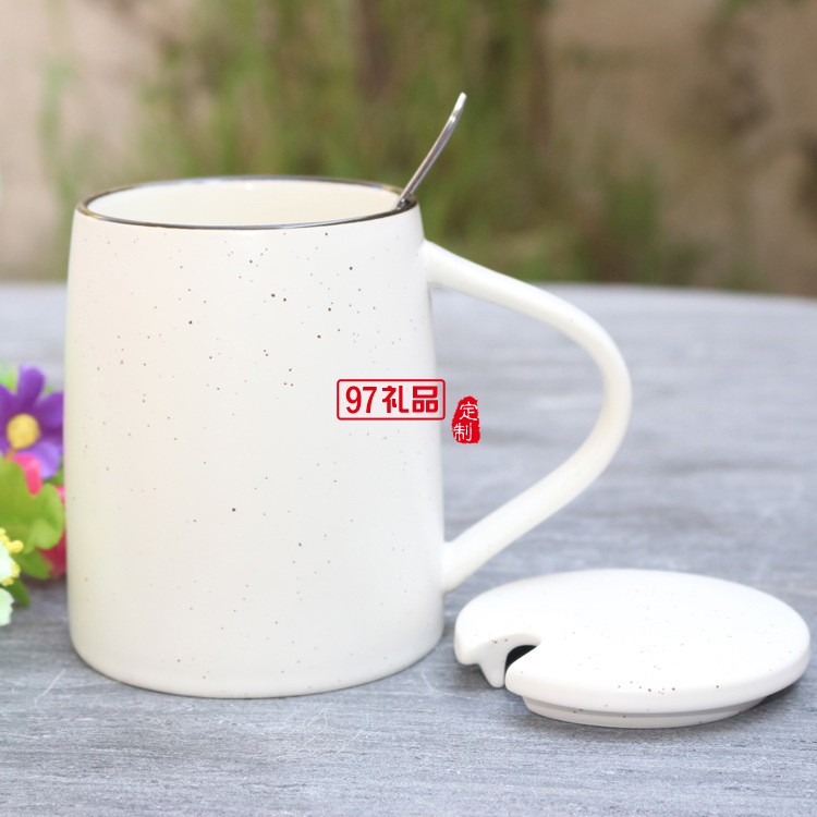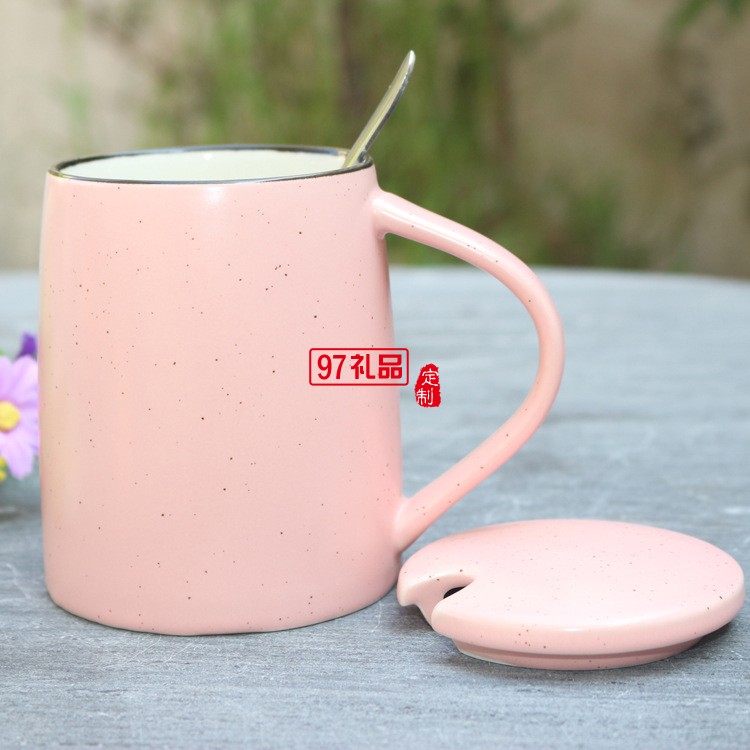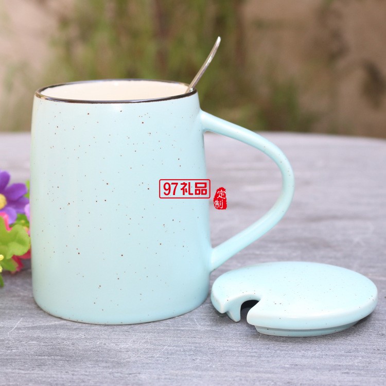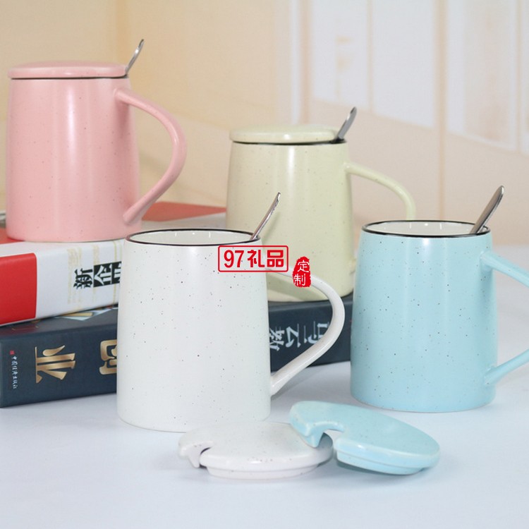 創(chuàng)意色釉陶瓷杯 帶勺子帶蓋子馬克杯 大容量早餐牛奶杯可印logo