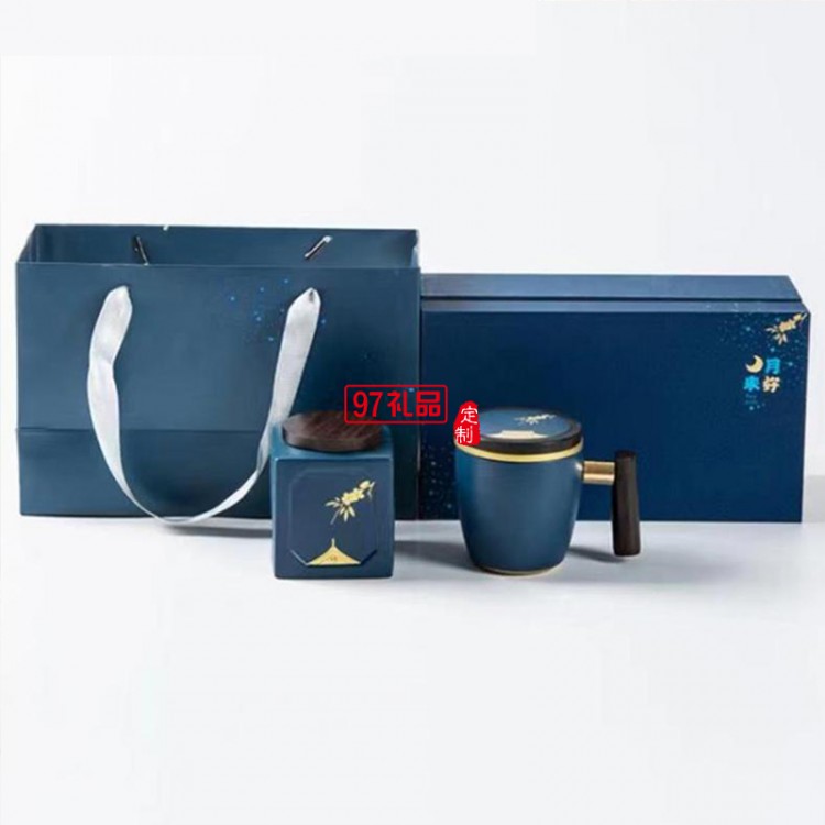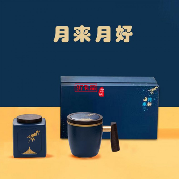 中秋茶具禮盒月來月好茶具辦公杯茶葉罐禮盒套裝 可定制logo