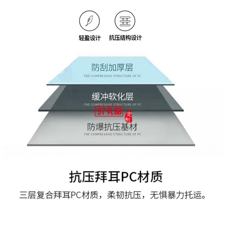 三層德國拜耳復合PC材料,柔韌抗壓,輕盈防摔;