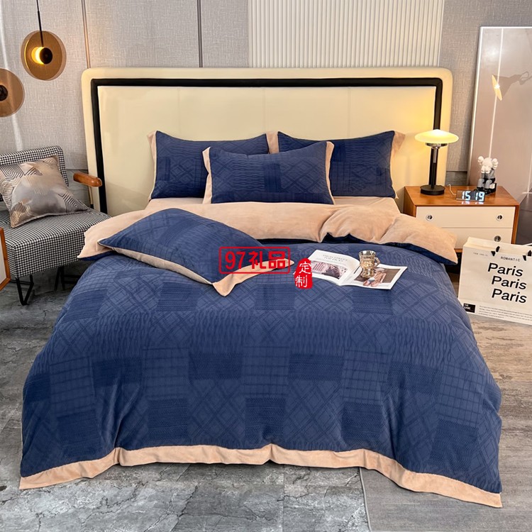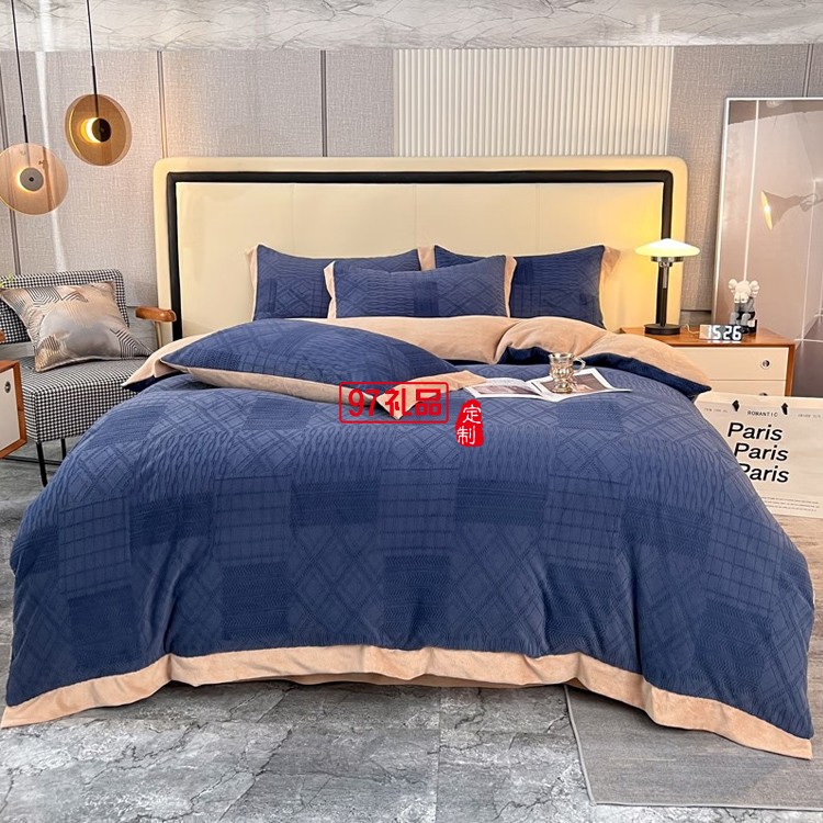 啄木鳥 牛奶絨雕花四件套-寶藍(lán) ZMN-NNR004定制公司廣告禮品