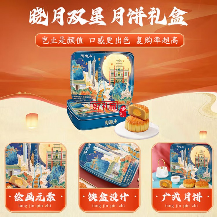 月滿九州雙蛋黃白蓮蓉廣式傳統(tǒng)經(jīng)典月餅高端定制禮盒中秋送禮團購