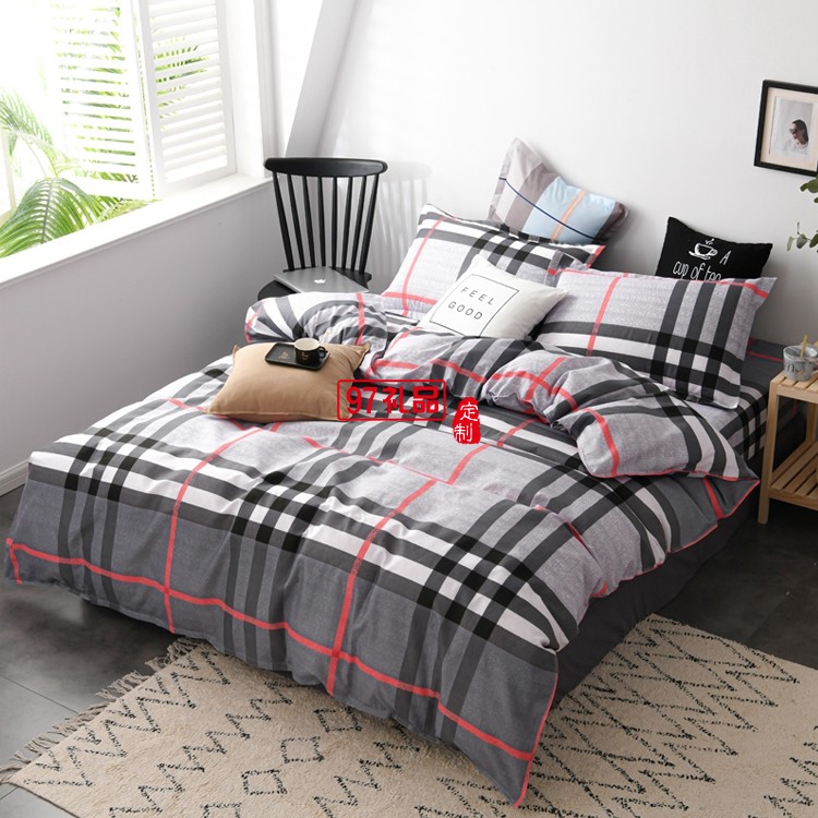 雅鹿 聚酯纖維套件活性長絨棉四件套床單被套枕套定制公司廣告禮品