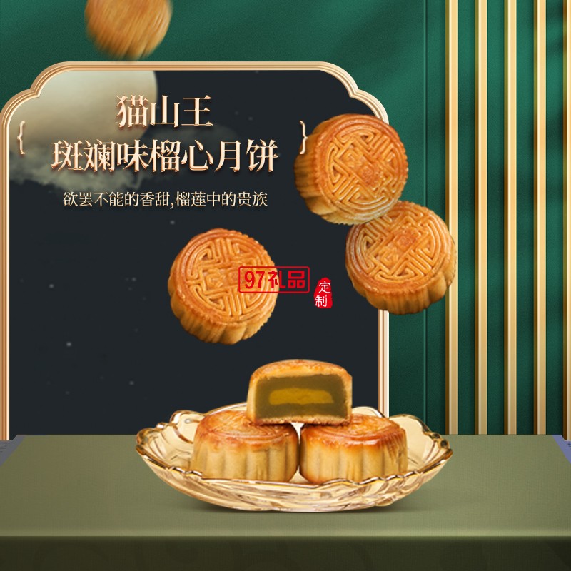 唐心貓山王斑斕流心月餅400g榴蓮果肉月餅中秋廣式港式月餅送禮