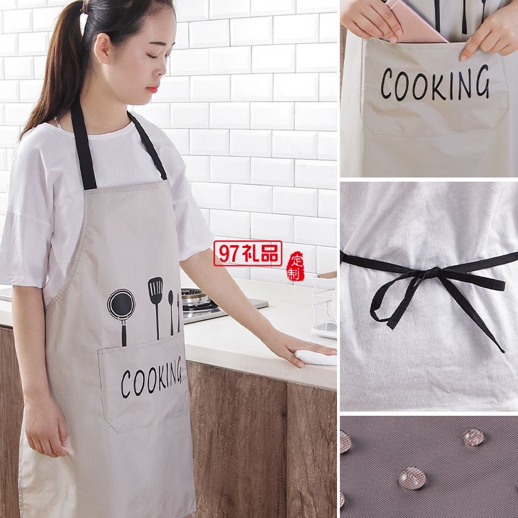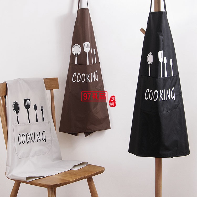 廚房圍裙女士圍兜家用夏季做飯防水防油大人圍腰罩衣定制活動小禮品定制