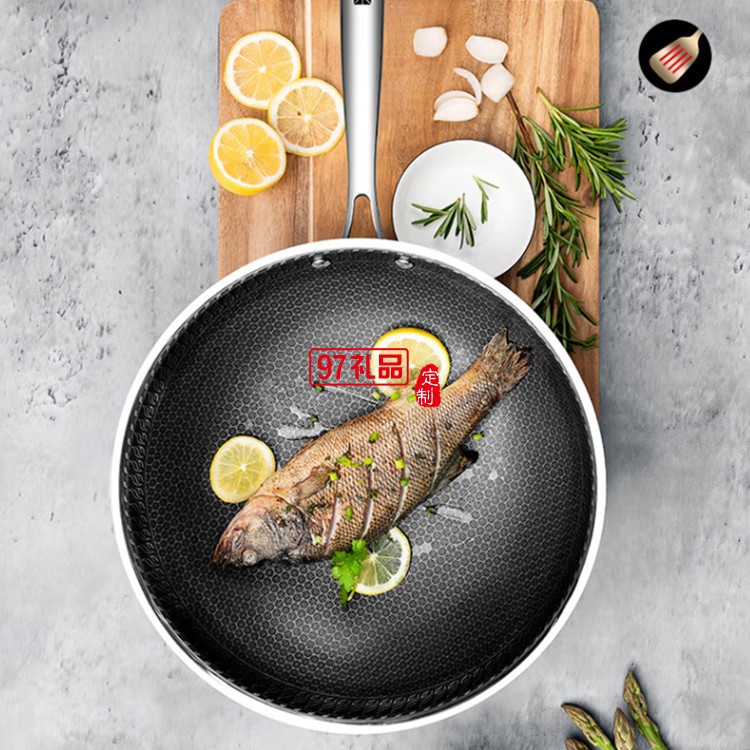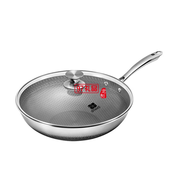 三禾炒鍋不銹鋼蜂窩不粘鍋2cm炒鍋炒菜鍋GC32B3定制公司廣告禮品