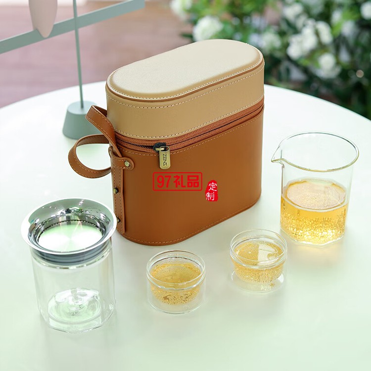哲品ZENS悅游帶包便攜茶具套裝現(xiàn)代茶具耐熱玻璃茶杯公道杯一壺兩杯