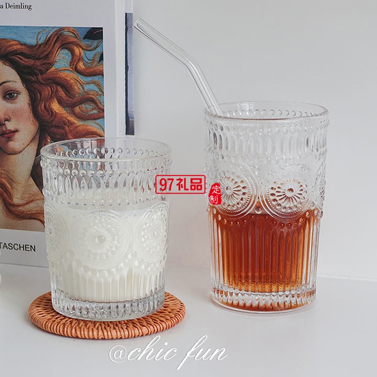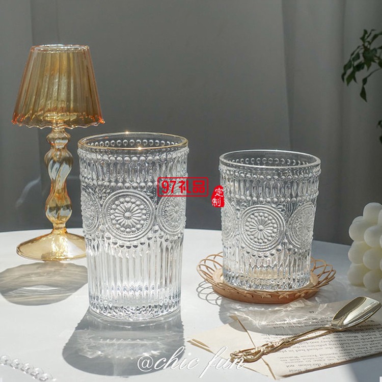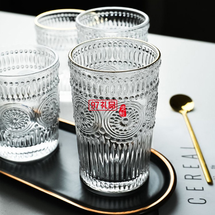 玻璃透明太陽花杯子家用水杯飲料果汁杯多規(guī)格啤酒杯子