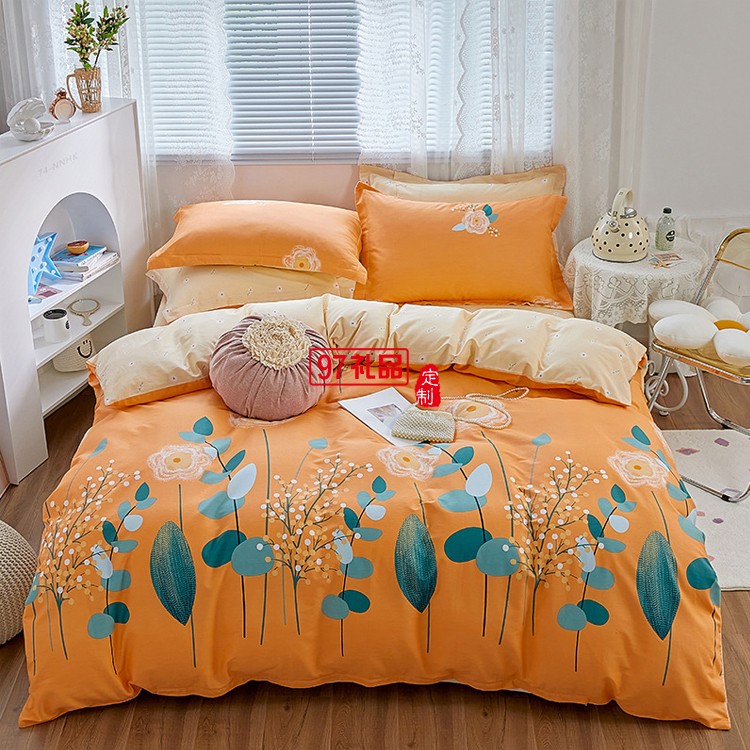 雅鹿 全棉印花套件四件套雙人床床單被套枕套定制公司廣告禮品