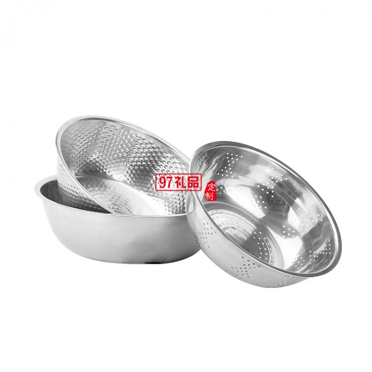 無磁不銹鋼淘米盆三件套 加厚廚房多用盆洗米篩套裝洗菜盆瀝水盆