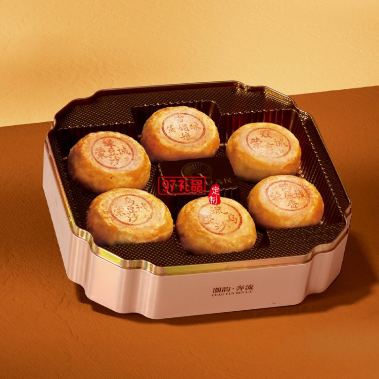 榮誠(chéng)潮韻奔流月餅禮盒雙烹潮汕蛋黃烏豆沙中秋送禮