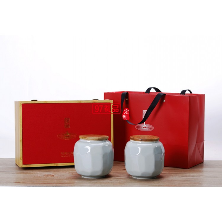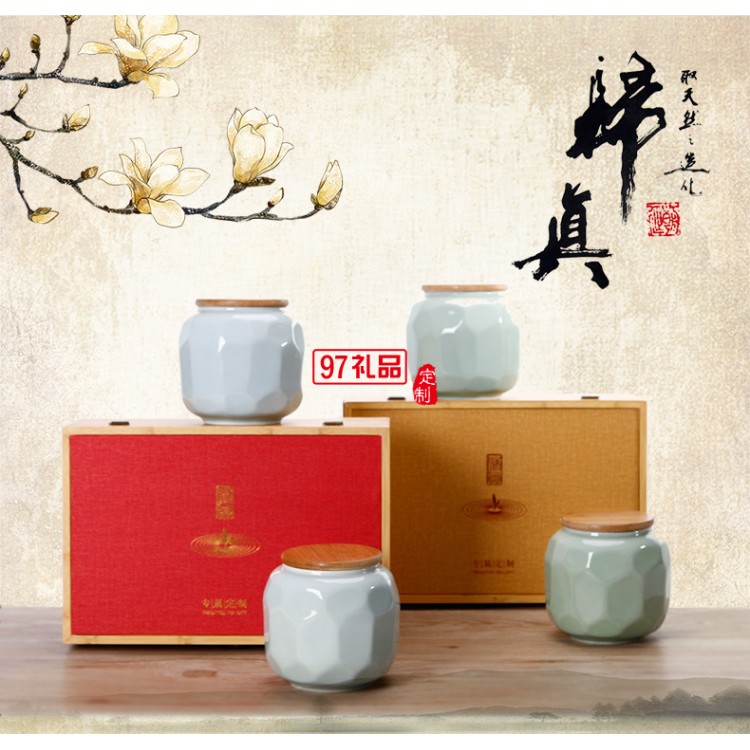 青瓷茶葉罐 歸真雙罐禮盒裝 大號陶瓷8兩綠茶茶葉包裝盒定制