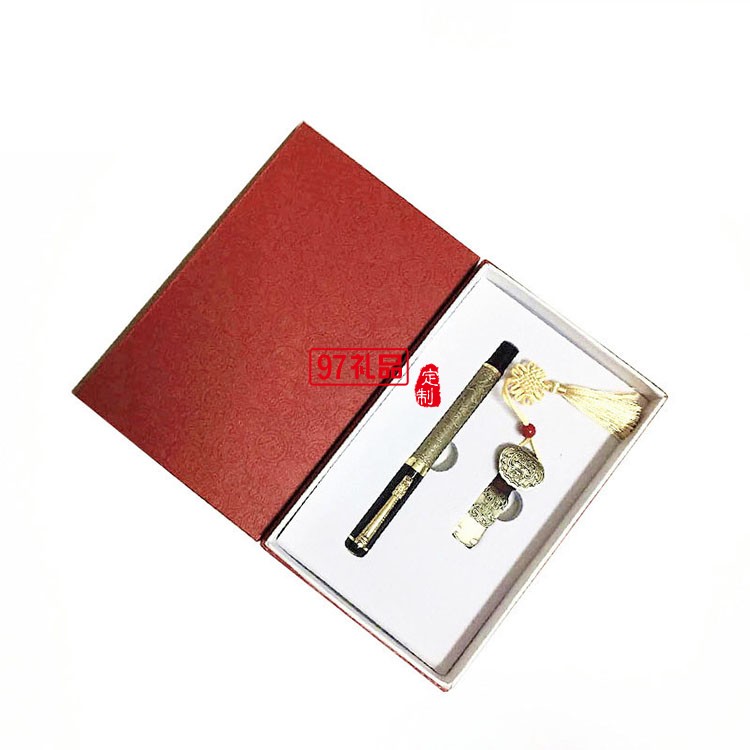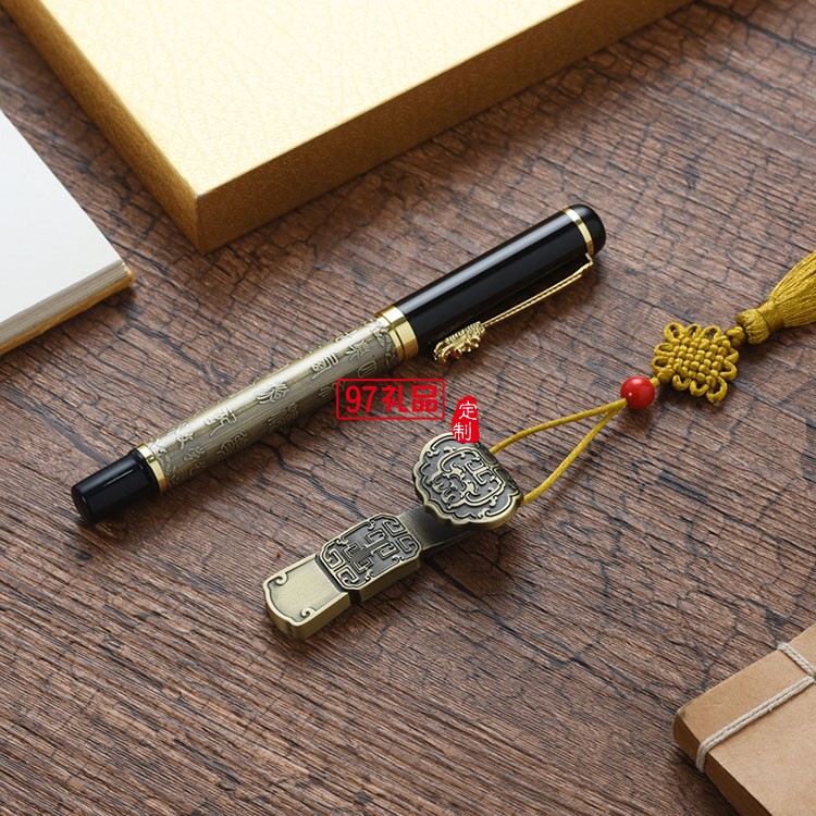 中國風U盤套裝8G16G如意U盤金屬簽字筆鋼筆logo企業(yè)周年禮品定制