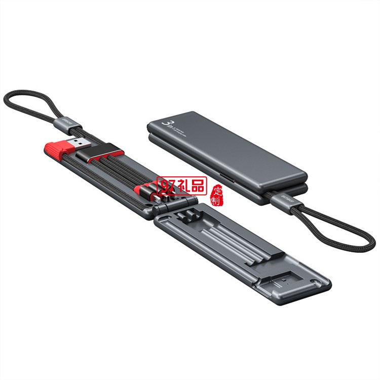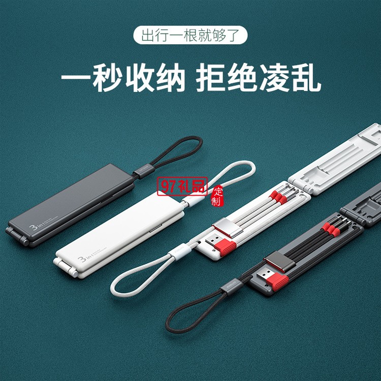 小巧便攜收納一拖三充電器線數(shù)據(jù)線定制公司廣告禮品