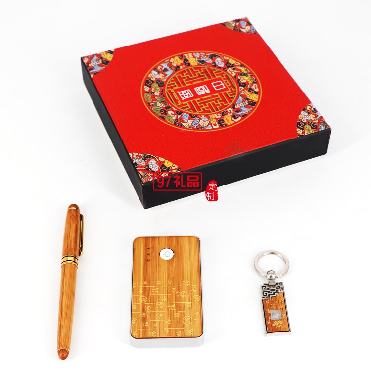 中國風(fēng)商務(wù)套裝定制紅木筆配移動電源配U盤紅木套裝高檔商務(wù)禮品