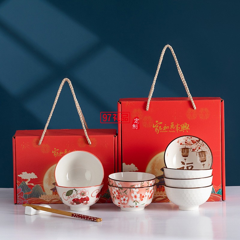 虎年虎碗套裝家用禮品碗筷批發(fā)網(wǎng)紅餐具套裝陶瓷碗活動小禮品贈送