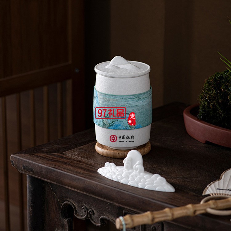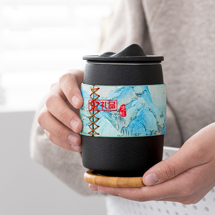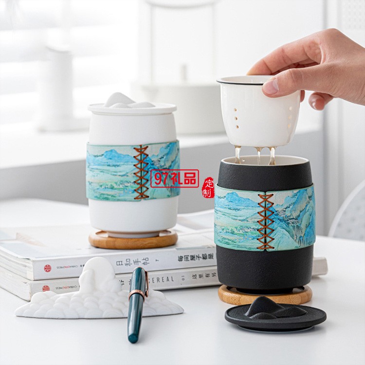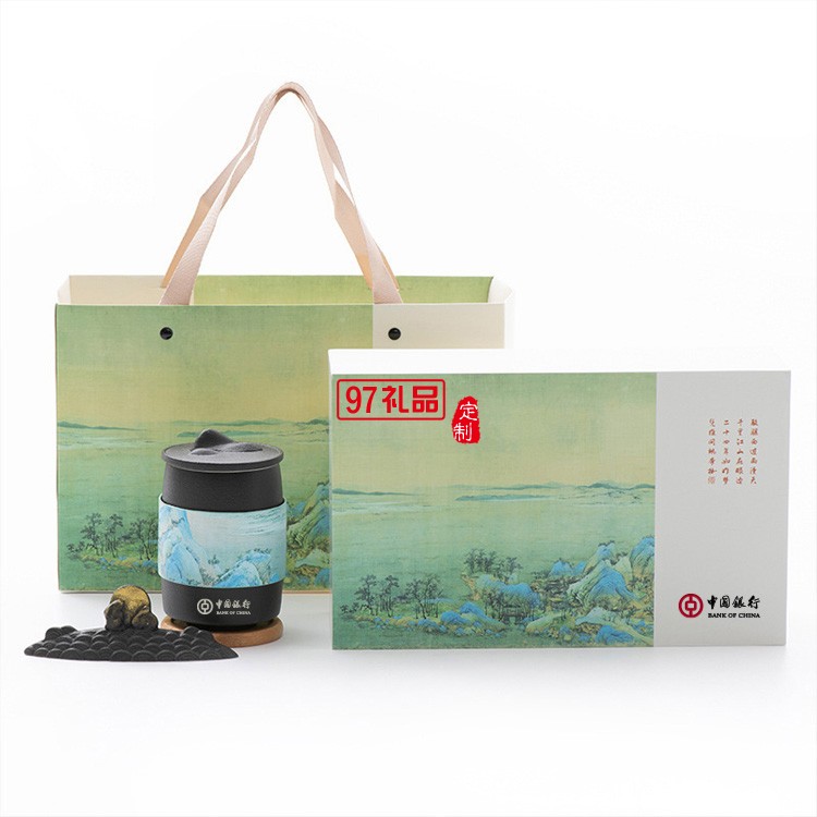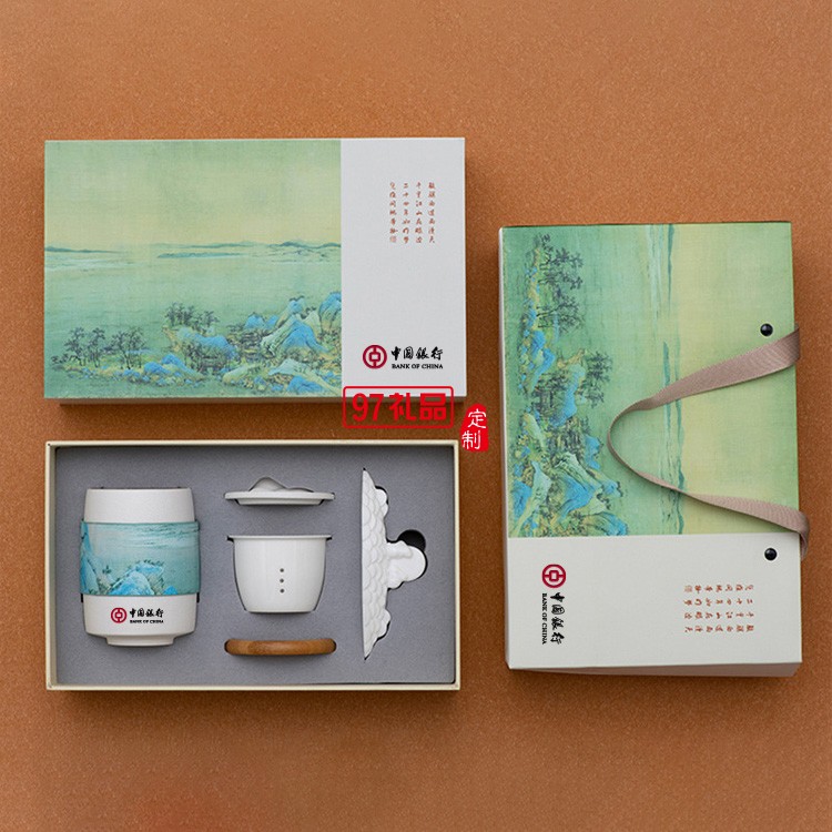 創(chuàng)意千里江山辦公家用泡茶杯中秋禮品套裝茶杯