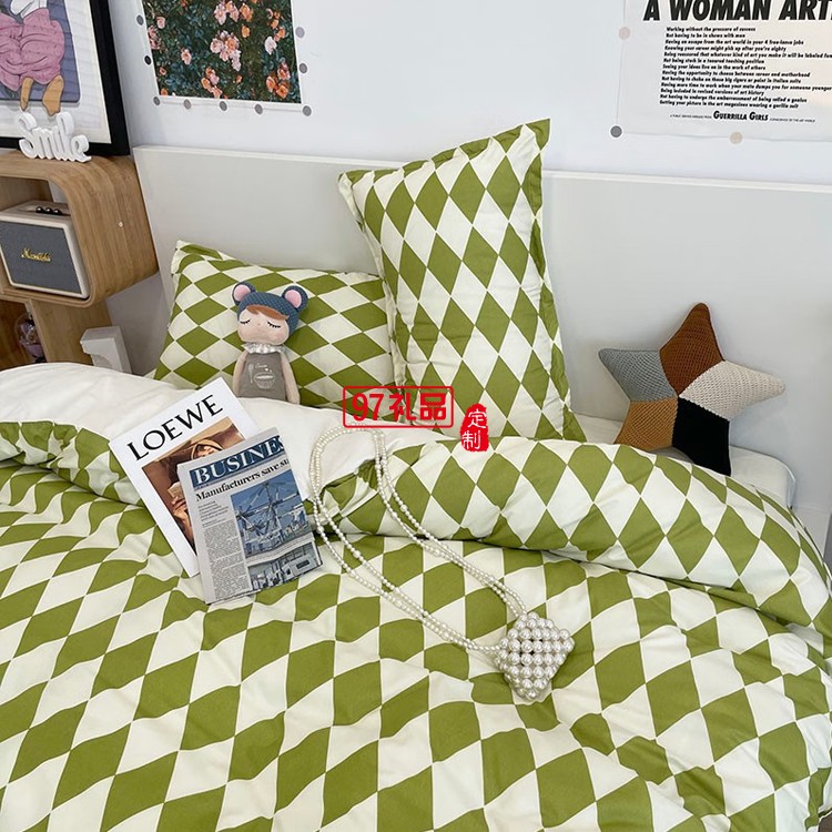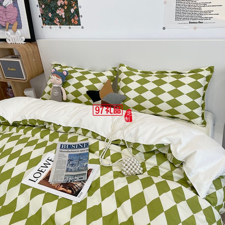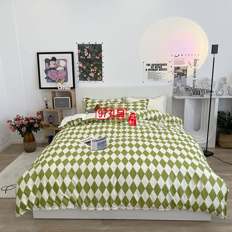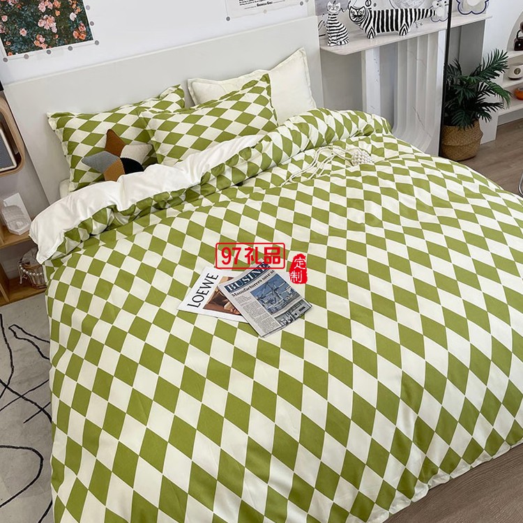 啄木鳥 卡膚棉四件套-抹茶菱格ZMN-KFM003定制公司廣告禮品