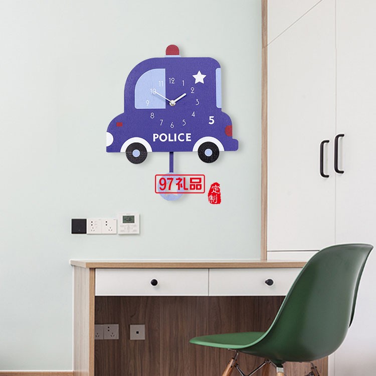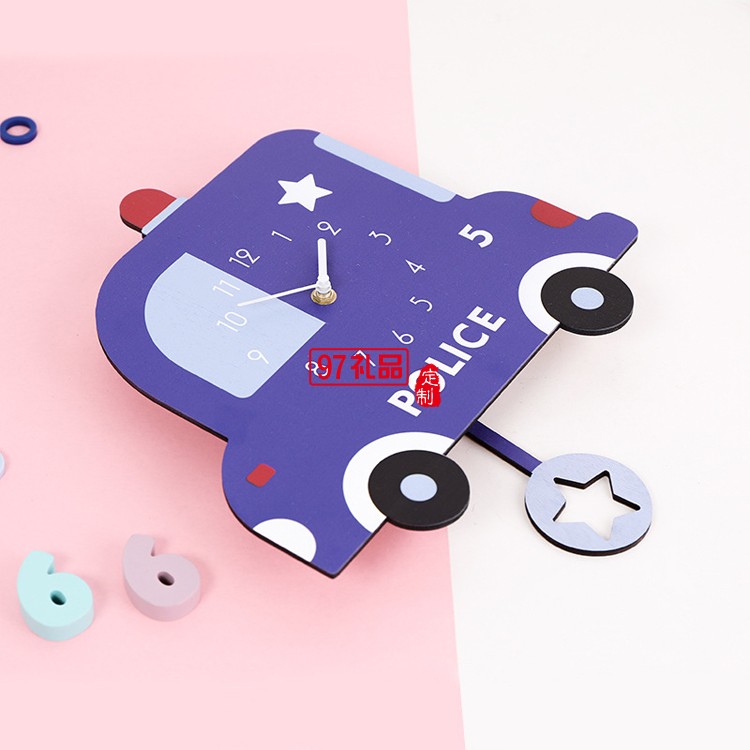 兒童意裝飾鐘表 可愛汽車卡通搖擺