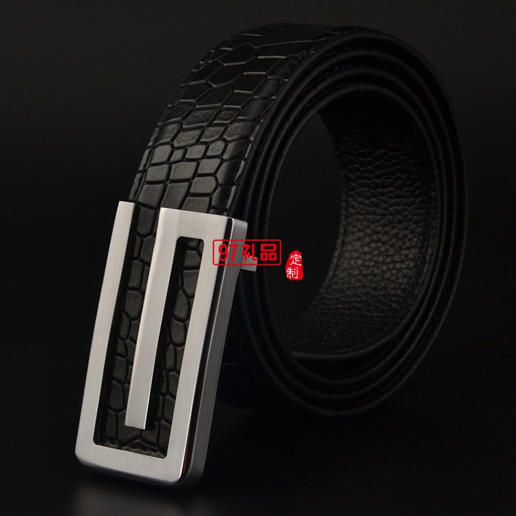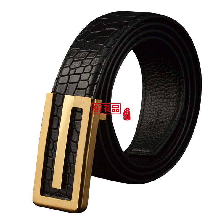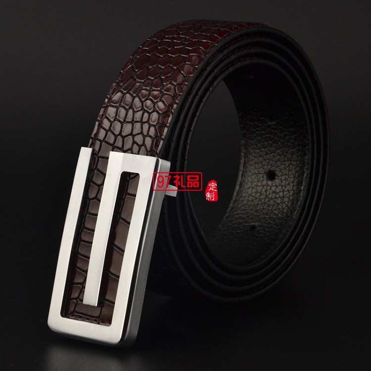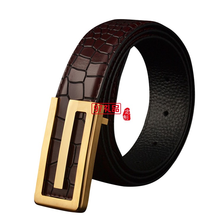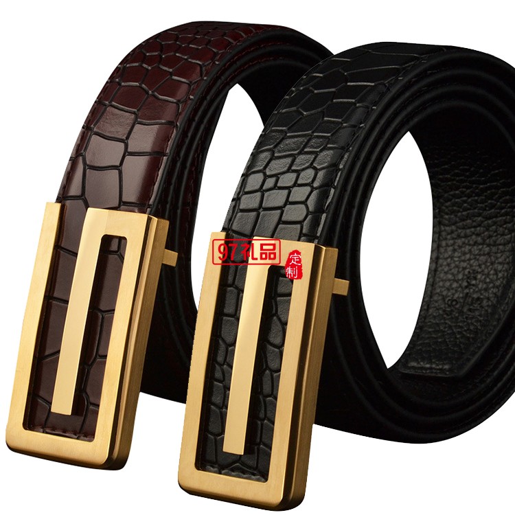 男士皮帶真皮頭層純牛皮平滑扣純銅鱷魚(yú)紋腰帶