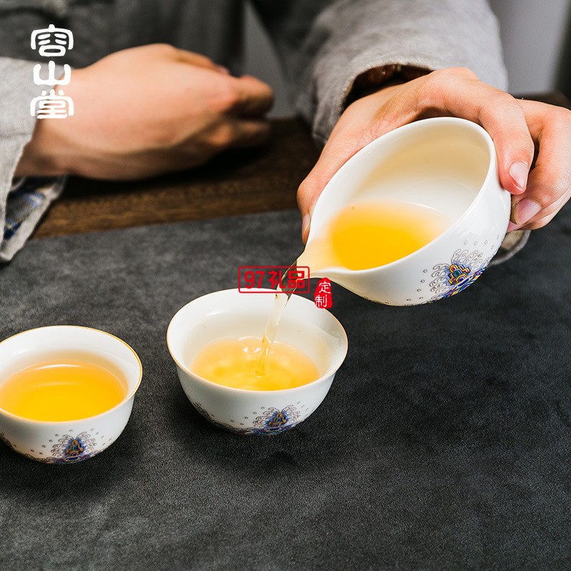 琺瑯彩繪白瓷旅行茶具套裝一壺兩杯公道杯