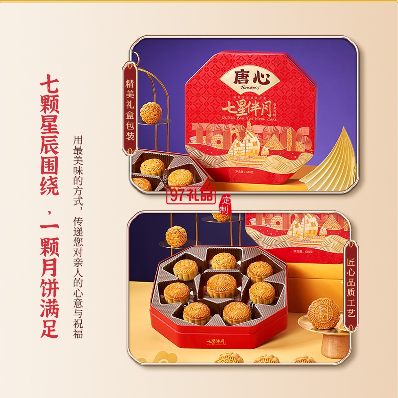 唐心七星伴月廣式金沙蛋黃蓮蓉禮盒裝月餅640g中秋團購批發(fā)