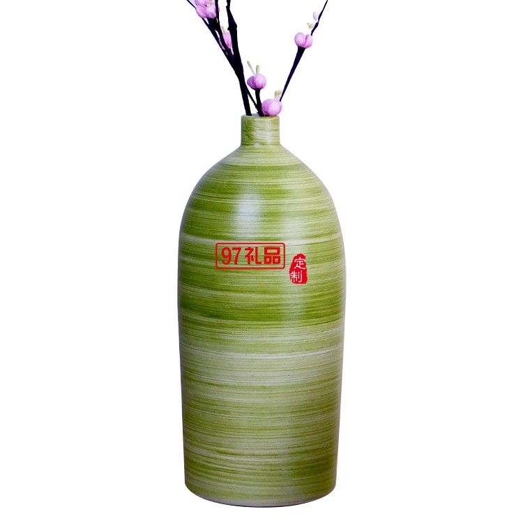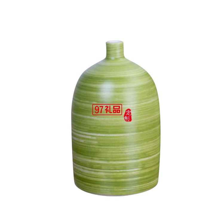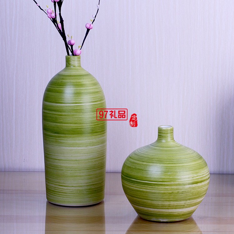 景德鎮(zhèn)陶瓷花瓶手工現(xiàn)代綠色螺紋陶藝裝飾工藝品擺件三件套