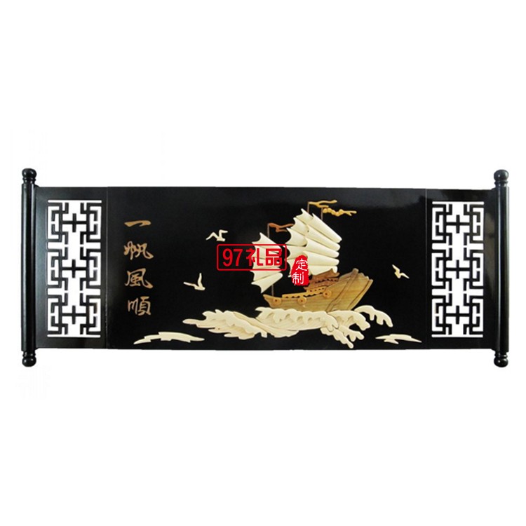 實木軸畫,背板為木質(zhì)密度板制作,圖案采用當?shù)馗鞣N珍惜木材手工拼制而成,