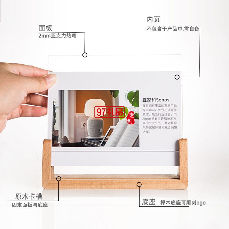 創(chuàng)意A4木質(zhì)框架桌面立牌臺卡木質(zhì)相框 可定制logo活動小禮品