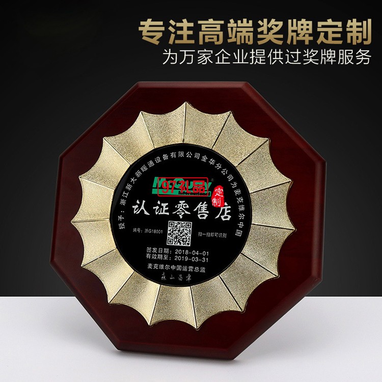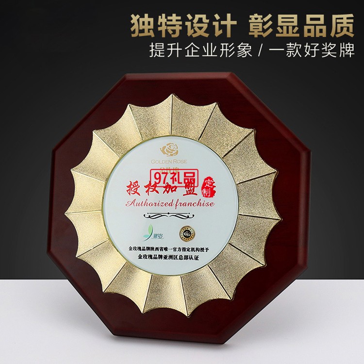橡膠色實木獎牌定制定做金屬授權牌木質榮譽證書企業(yè)周年禮品