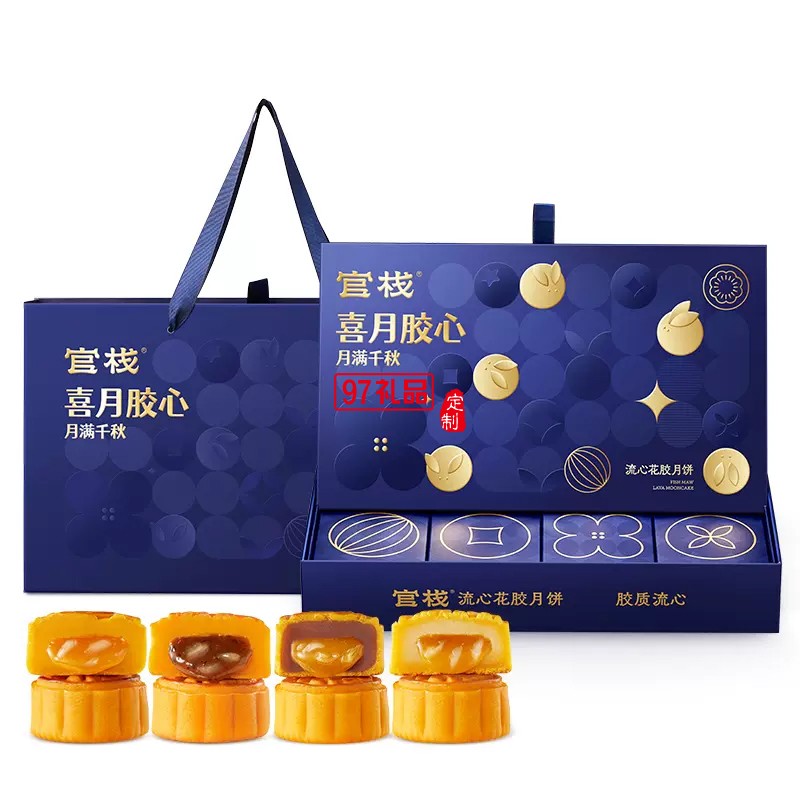 官棧月餅禮盒廣式黑松露流心奶黃花膠月餅中秋節(jié)公司